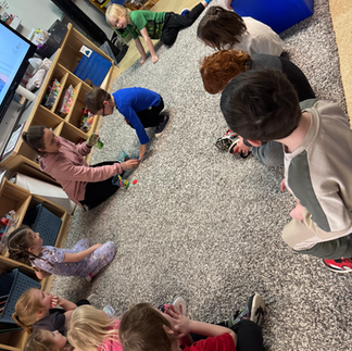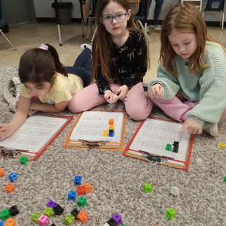 In math we have continued to explore part-part-whole. We've been playing some whole group games such as organizing students into part-part-whole. For example we can organize 3 students into 2 girls and 1 boy, 3 girls and 0 boys, 3 boys and 0 girls, 2 boys and 1 girl, etc. We also have been using our math blocks to help us visualize how different numbers can be formed.