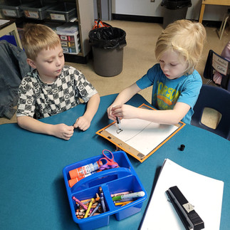 In Art, creativity was in full swing! We made an igloo home for our little penguin while strengthening our fine motor skills. The students worked hard on their scissor and glue skills, and they did a fantastic job. We also explored a fun fine motor art activity where students pushed different objects around their papers using markers. This activity helps develop the motor control needed for writing, encourages problem-solving, and best of all the kids had a blast as I kept surprising them with new objects to move around!