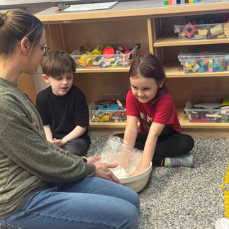 We played outside and took advantage of the warmer weather that came our way this week and we talked about how animals keep warm, following it up with a fun animal blubber and fat experiment. For our experiment, everyone tried on the "fat glove" and put their hand into a bowl of ice. We compared the hand with the glove and the hand without the glove to see which stayed warmer. We discussed how fat and fur helps animals stay warm in the winter which is why they don't need a winter coat. The kids really loved this and everyone had a second round.