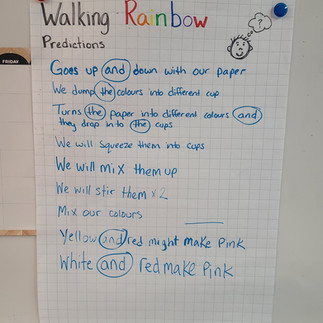 On Wednesday, we played hockey in the gym with the Bulldogs. We love when community members come to visit us. This connects to our Social Studies learning. The Bulldogs gave autographs and talked with the children. Many students were excited to share that they play hockey too. We practiced our sight word “as” and wrote our Star Student’s name. We also made beautiful rainbow art with a pot of gold and practiced rhyming words.